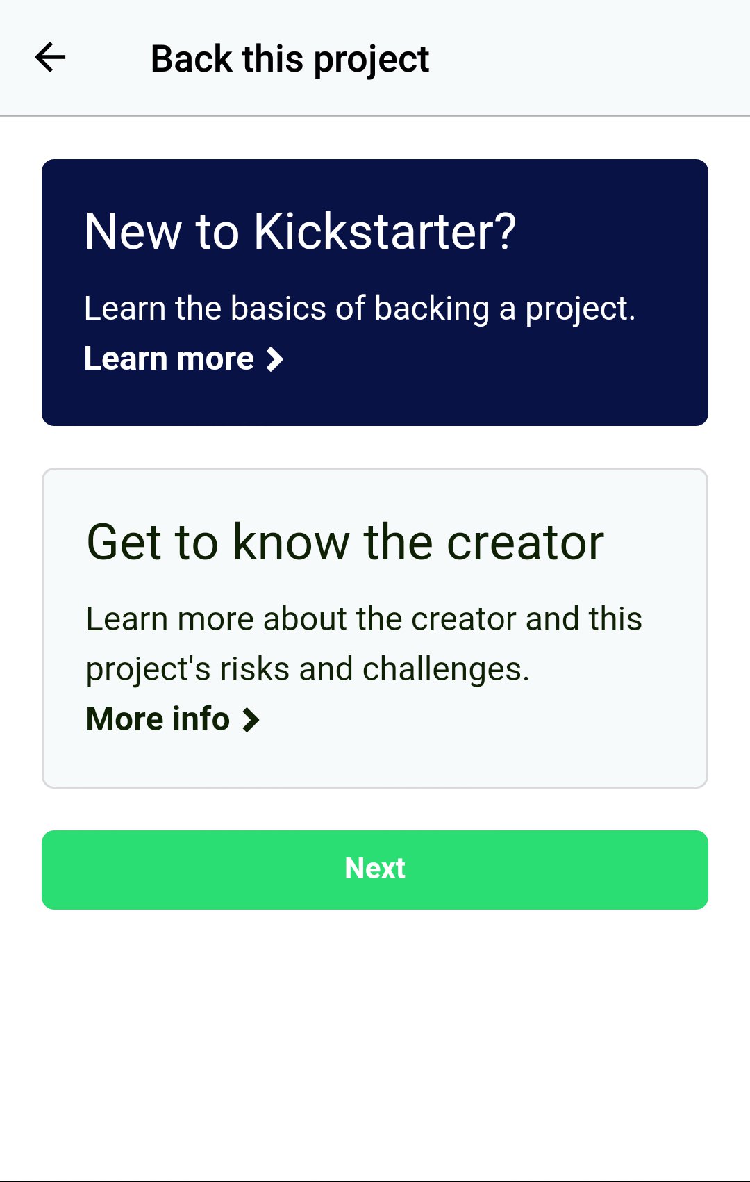 Przed wybraniem opcji wsparcia aplikacja zaproponuje nam zapoznanie się z instrukcją oraz ważnymi wiadomościami dotyczącymi zasad „crowdfundingu”. Taka mała encyklopedia, ale na pewno przyda się osobom, które wpłacają pieniądze po raz pierwszy.