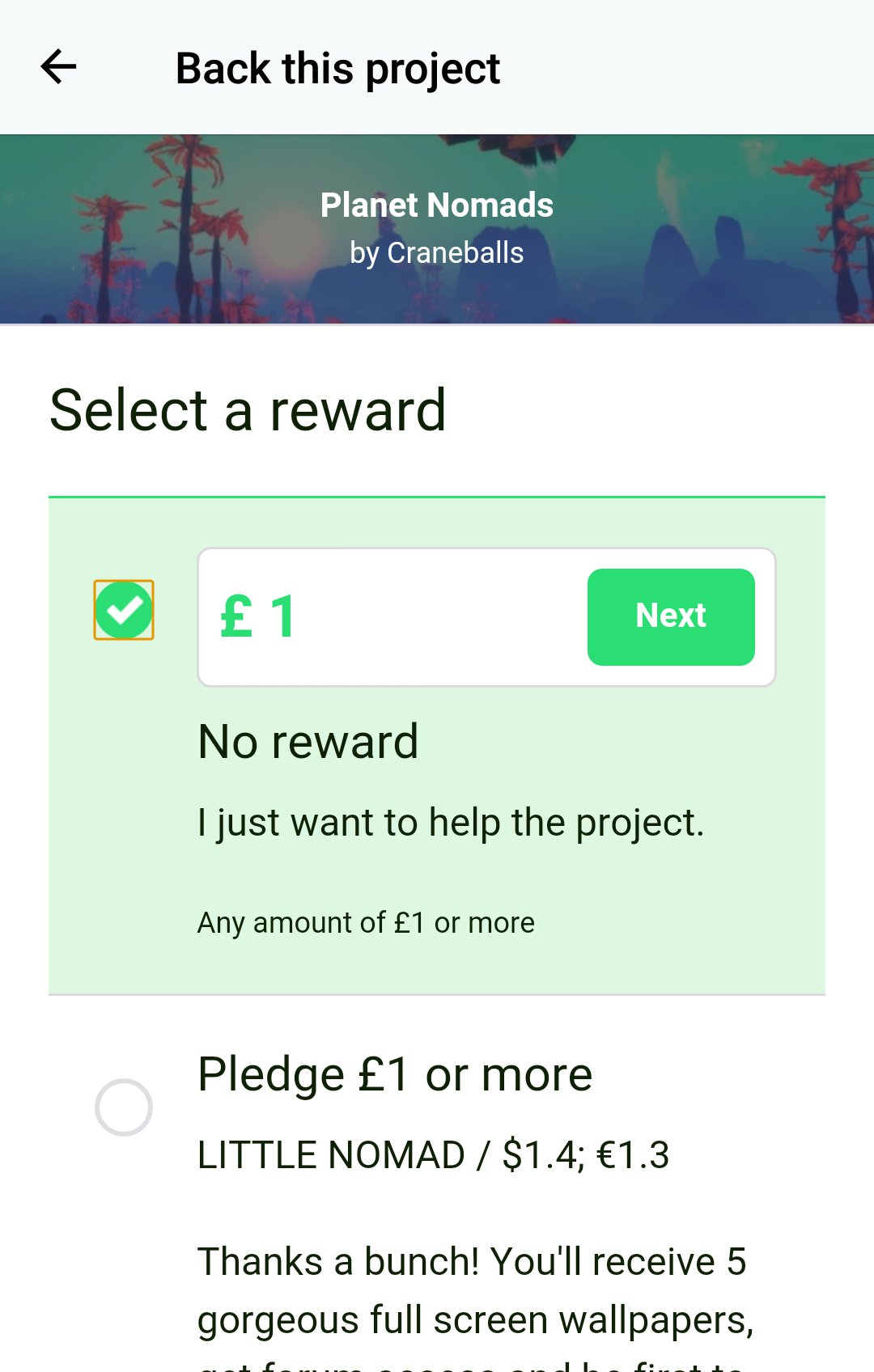 Zazwyczaj przy projektach autorzy udostępniają kilka wariantów, wśród których każdy różni się ceną oraz tym, co dostajemy za konkretną kwotę. Aplikacja pozwala na dowolny wybór ilości wpłacanych pieniędzy oraz proponuje opcje utworzone przez osoby, które będziemy wspierać. Pozostaje już tylko wybrać interesującą nas kwotę i przejść do zapłaty, przelewem, PayPalem lub kartą kredytową.