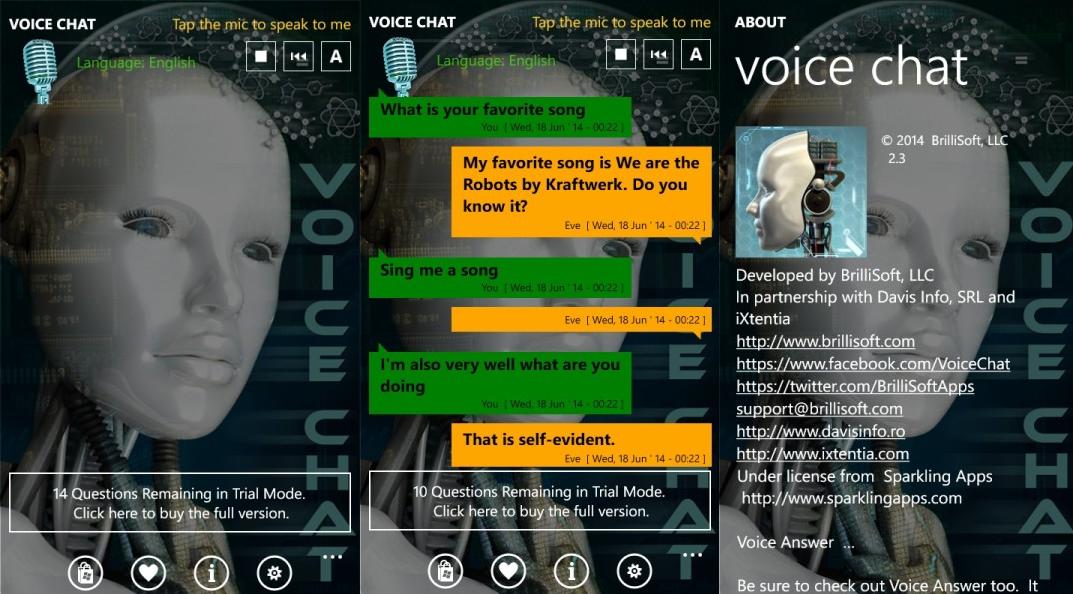 Na pierwszy ogień nie idzie gra, lecz aplikacja. Voice Chat możemy porozmawiać sobie z robotem, który odpowiada na nasze pytania. Teoretycznie jest to tylko dobra zabawa na kilka chwil, ale wspominam o niej ponieważ razem z Windows Phone 8.1 dostaliśmy Cortanę. Ta aplikacja jest namiastką asystenta głosowego od Microsoftu. Możemy w niej zadawać pytania w języku angielskim i otrzymamy odpowiedź. Proste rzeczy jak ulubiony film są wyłapywane bezbłędnie. Z trudniejszymi zdaniami nie jest już tak łatwo. Jeśli chcecie darmową i lepszą wersję tej aplikacji to zmieńcie region na USA, a język na angielski i cieszcie się Cortaną.