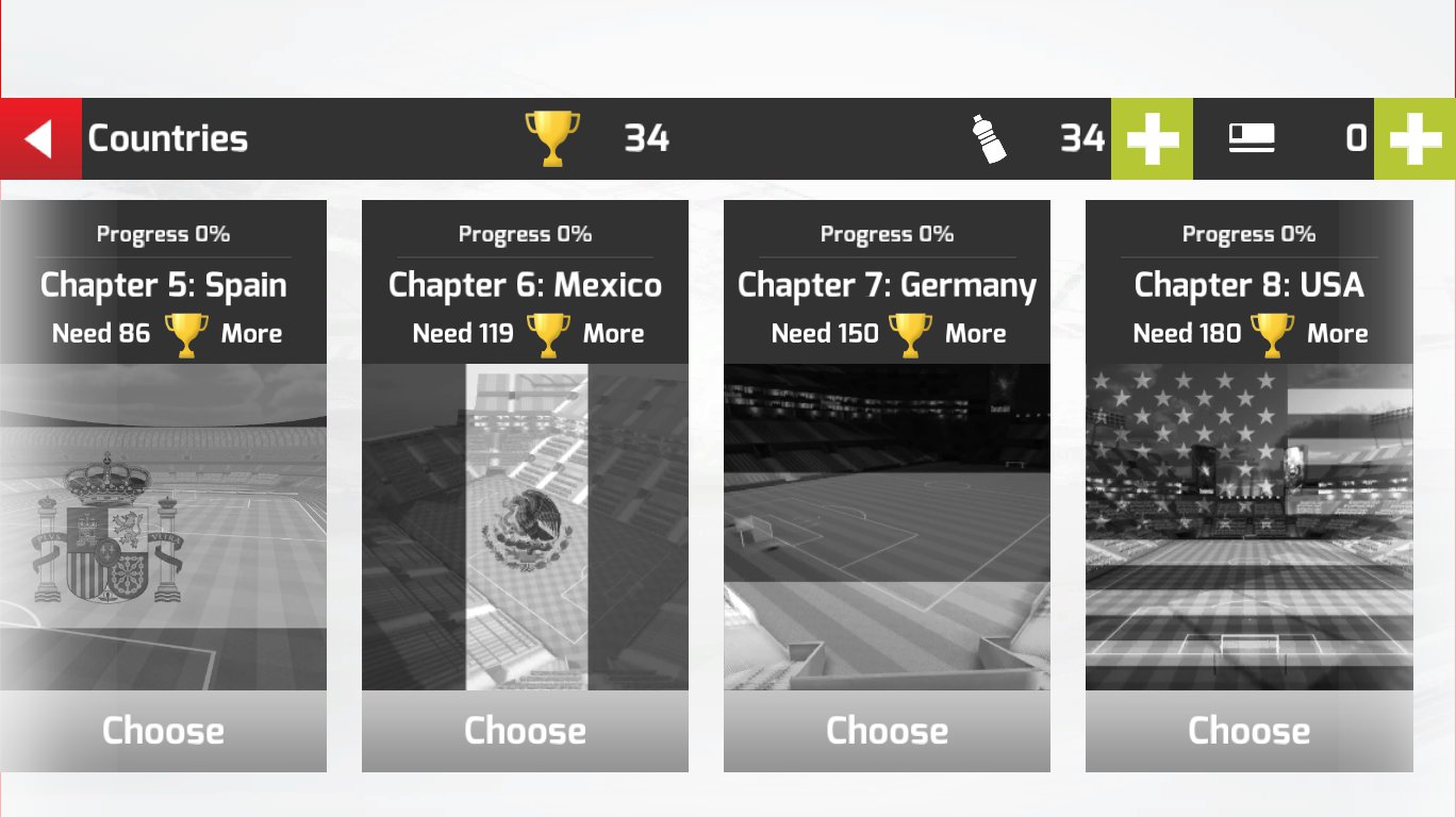 Generalnie naszą przeszkodą w osiągnięciu celu nie jest bramkarz drużyny przeciwnej, ale czerwone tarcze, w które musimy trafić. Rozgrywka nie polega bowiem na strzeleniu gola, ale na uderzeniu piłką we wszystkie cele przygotowane przez twórców w odpowiedniej ilości podejść. Na każdy level przeznaczono maksymalnie dwanaście prób, ale warto wykonać zadanie mniejszą ilością strzałów z jednej prostej przyczyny. Im szybciej „oczyścimy” mapę z celów, tym większą nagrodę otrzymamy. Standardowo przyznawane są puchary – od jednego do trzech. O ile w przypadku innych gier z analogicznym systemem nagradzania nie musieliśmy przejmować się marnym wynikiem gwiazdkowym, o tyle w Football World League 3D: Penaulty powinniśmy się tematem zainteresować. Wszystko to dlatego, że za dobre wyniki zdobywamy butelki wody. Dobrze czytacie – butelki z wodą. Najzwyklejsza ciecz jest niezbędna do wcześniejszego powtarzania niezaliczonych poziomów. Działa to mniej więcej tak, że po nieudanej próbie strącenia wszystkich tarcz gracz musi czekać określony czas na możliwość ponownego rozegrania levela. Wykorzystując tudzież płacąc tą śmieszną, wirtualną walutą skracamy ten czas do zera.