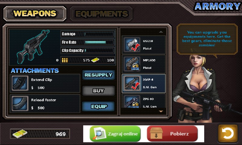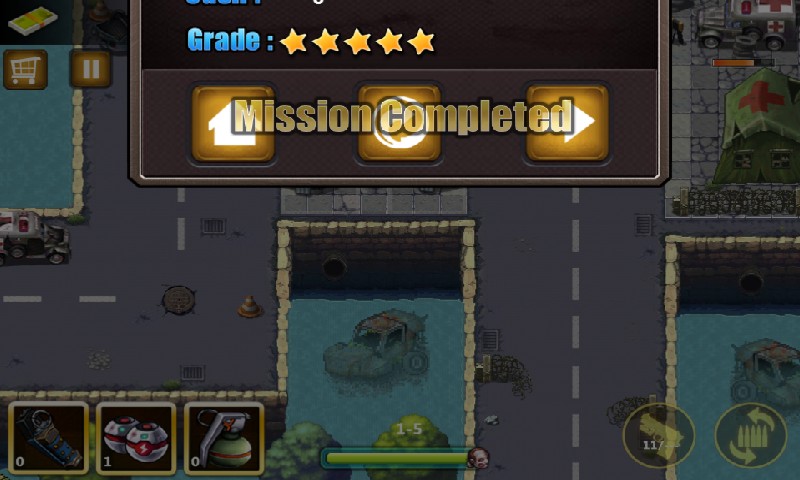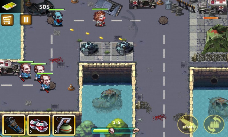 Nie mogę jednak nie wspomnieć o tym, że początek gry może być dla wielu irytujący. Gdy mamy tylko podstawowy pistolet to musimy za każdym razem naciskać ekran, żeby strzelić. Przeciwników chwilami jest naprawdę wiele, więc zamiast patrzeć na to co się dzieje na ekranie po prostu stukamy w niego automatycznie i liczymy, że trafimy w zombie. Nie jest to duży minus, ponieważ szybko można przesiąść się na coś lepszego, ale niektórzy mogą się zrazić.