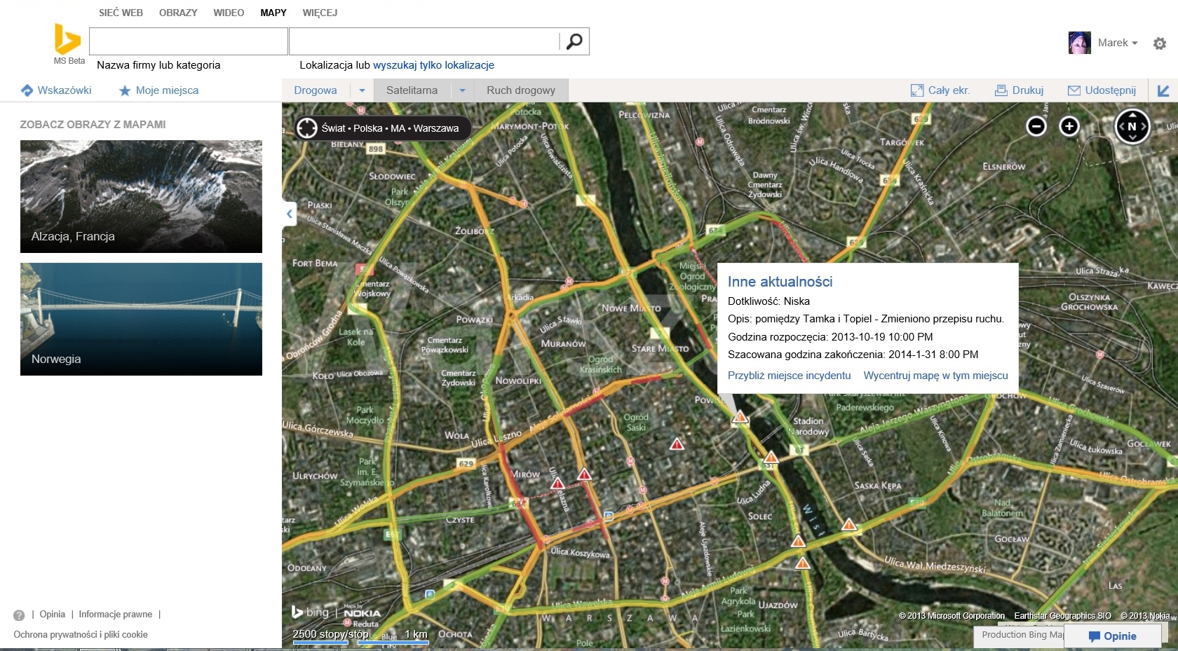 Microsoft informuje: Mapy Bing trafiły do Polski, co równa się dostępowi do zlokalizowanych map, bogatej bazy zdjęć i szczegółowych informacji lokalnych.