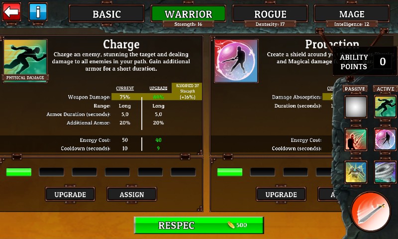 Nasz bohater ma 3 rodzaje ataku, które możemy dowolnie zmieniać podczas rozgrywki. Poza tym mamy też 3 drogi rozwoju naszej postaci: wojownik, myśliwy oraz mag. Po każdym zdobytym poziomie dostajemy punkt, którym możemy odblokować nową umiejętność lub rozwinąć już posiadaną. Jednocześnie możemy używać 6 umiejętności, z czego 3 będą pasywne (działają cały czas) oraz 3 aktywne, które aktywujemy podczas rozgrywki. Jeśli w środku gry zdecydujemy, że nie chcemy już grać magiem, a marzy nam się kariera wojownika to możemy cofnąć rozdane wcześniej punkty i przydzielić je na nowo.