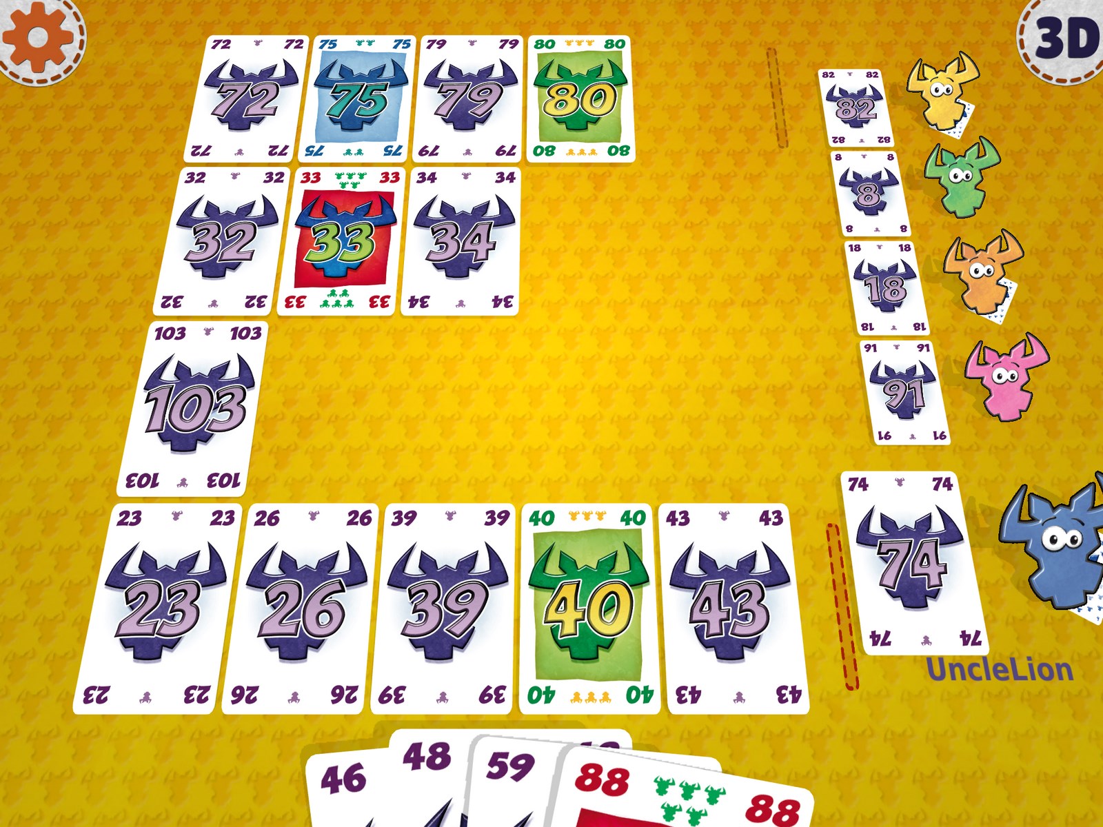 Naszym celem jest zebranie jak najmniejszej liczby ujemnych punktów, które przyznawane są za bycze głowy znajdujące się na kartach. Obszar gry to 4 rzędy kart, a każdy z nich może składać się maksymalnie z 5 kart. W każdej turze gracze wybierają jedną z kart ze swojej wirtualnej ręki i jednocześnie odsłaniają. Następnie wszystkie są dokładane do już leżących na stole, począwszy od tej o najniższej wartości, pamiętając o kilku prostych zasadach:
