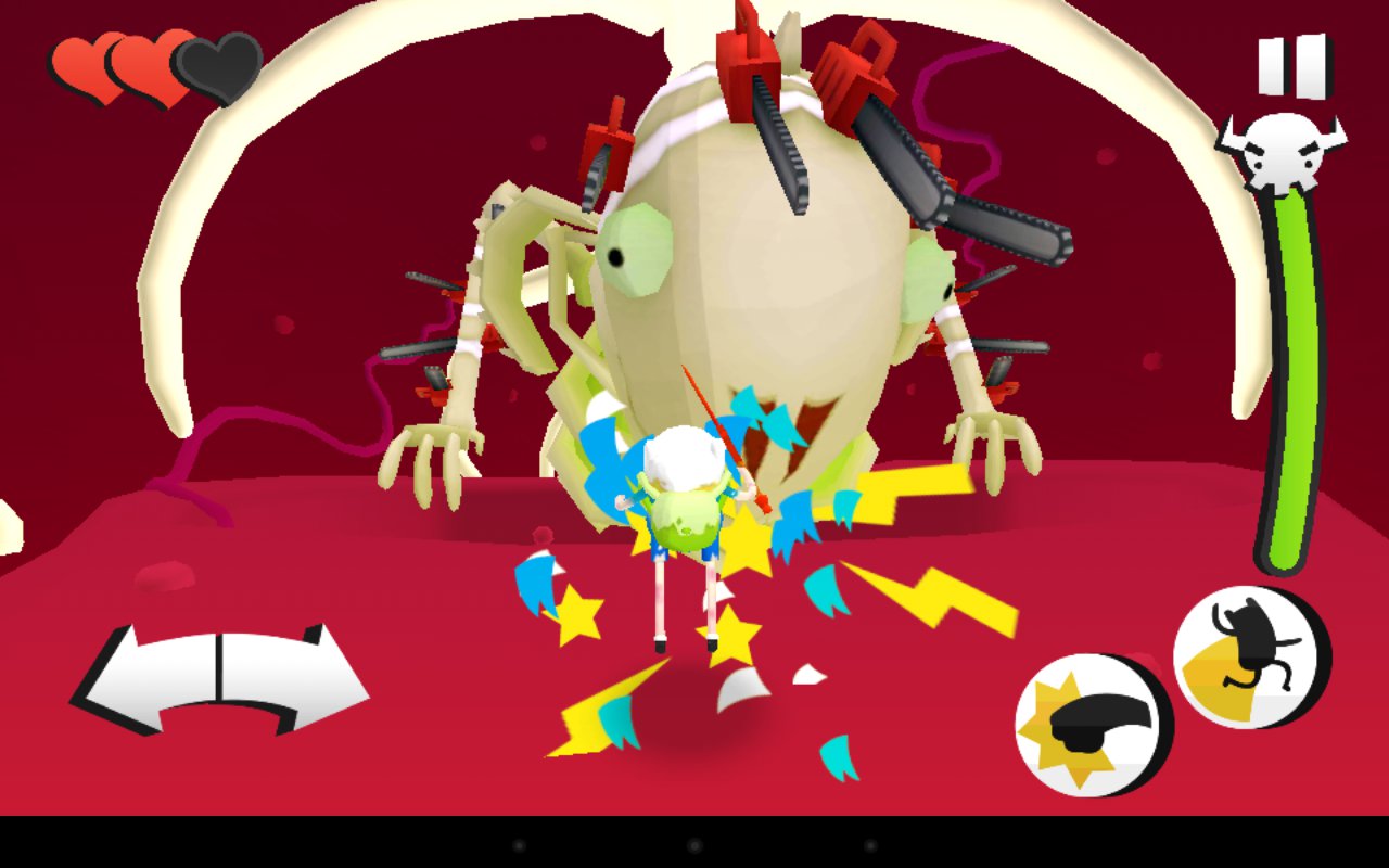 Walka z bossami nie musi odbywać się w biegu. Z pierwszym z nich zmierzymy się na okrągłej planszy unikając jego ataków i wyprowadzając własne w odpowiednich momentach. Do walki przydaje się jednak dodatkowe wyposażenie, którego tu nie brakuje. Szybko zbierzemy Demoniczny Miecz, ale później będziemy mogli uzbroić się w łyżko-widelec, rybę-miecz, rękę kościotrupa itd.