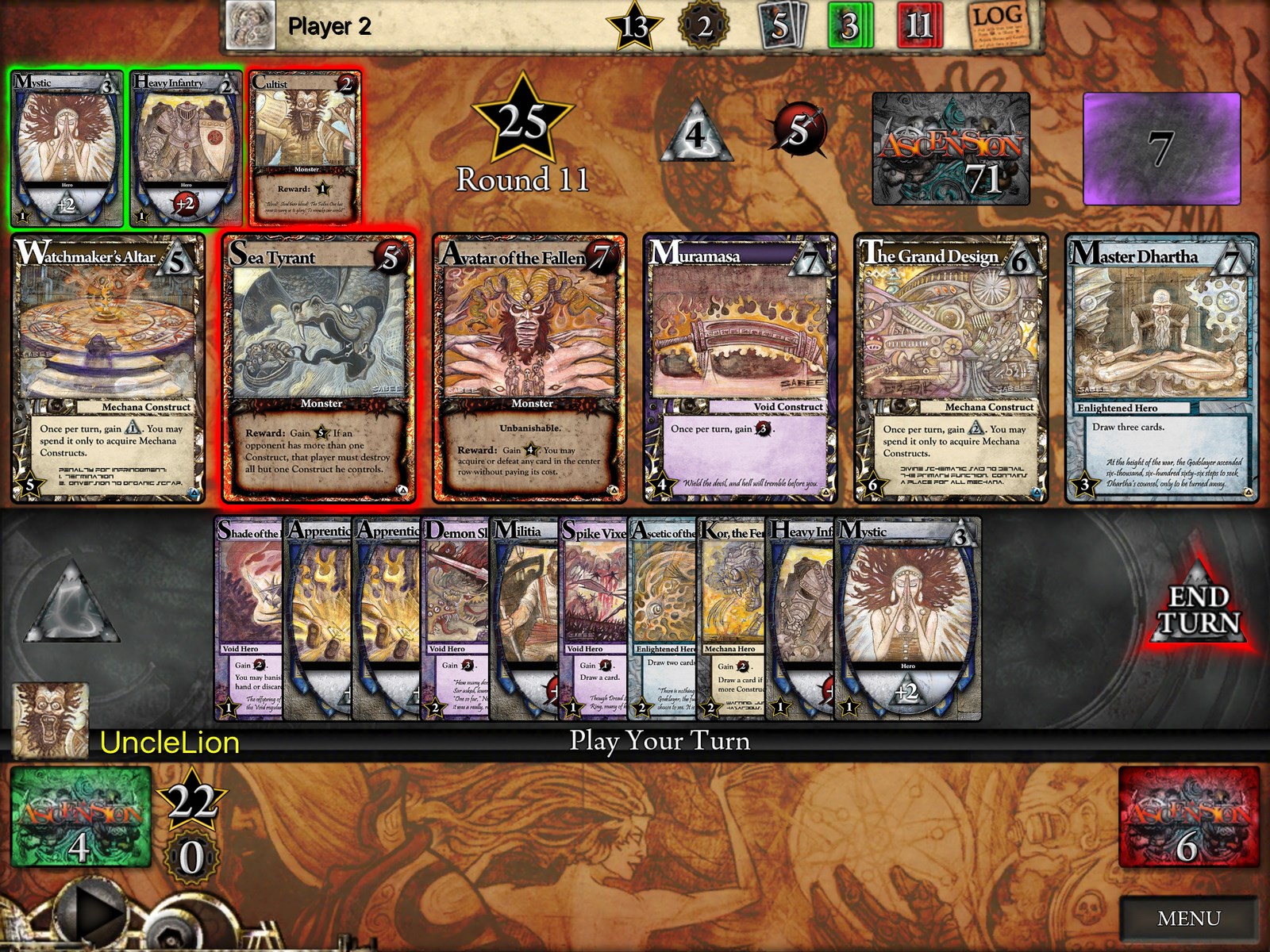 Wspomniana dynamika rozgrywki sprawia, ze równiej w trybie online Ascension jest bardzo ciekawym wyborem. Choć obecnie dostępnych jest kilka płatnych dodatków do aplikacji i wielu graczy chce grać z wykorzystaniem dodatkowych kart, to jednak nawet w podstawowej wersji zazwyczaj nie ma problemu ze znalezieniem przeciwnika. Akcent położony w stronę taktycznej rozgrywki sprawia, że w Ascension: Chronicle of the Godslayer bez problemu można rozgrywać kilka partii jednocześnie (twórcy aplikacji nie zapomnieli o umożliwieniu płynnego przechodzenia między poszczególnymi partiami).