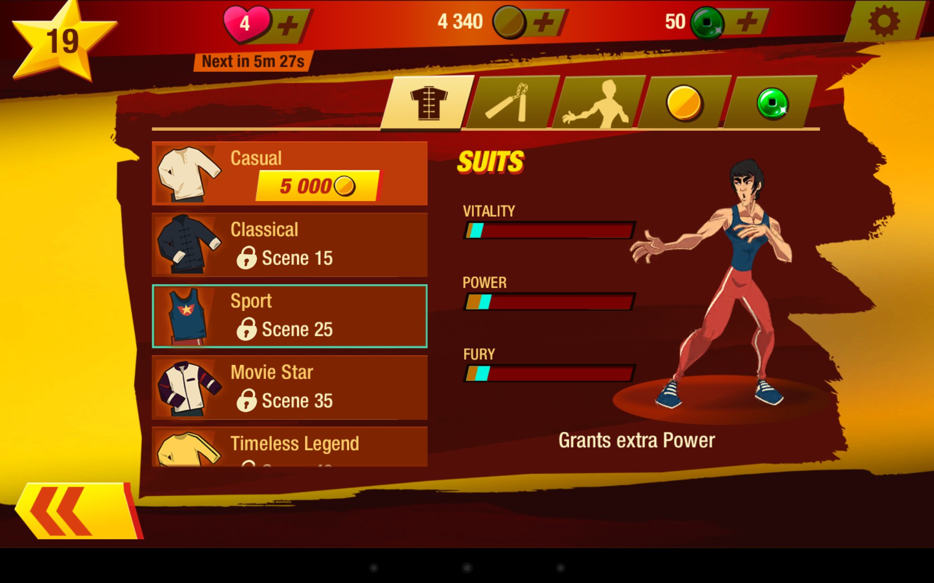 Odgrywającc kolejne sceny, odblokujemy power upy, ale nie tylko. Za zebrane pieniądze kupimy ulepszenia dla bohatera, a grę dodatkowo urozmaicą nowe stroje i zakup charakterystycznej broni zwanej nunchako. Na to musimy jednak uprzednio zapracować, zbierając wypłaty w postaci złotych monet.