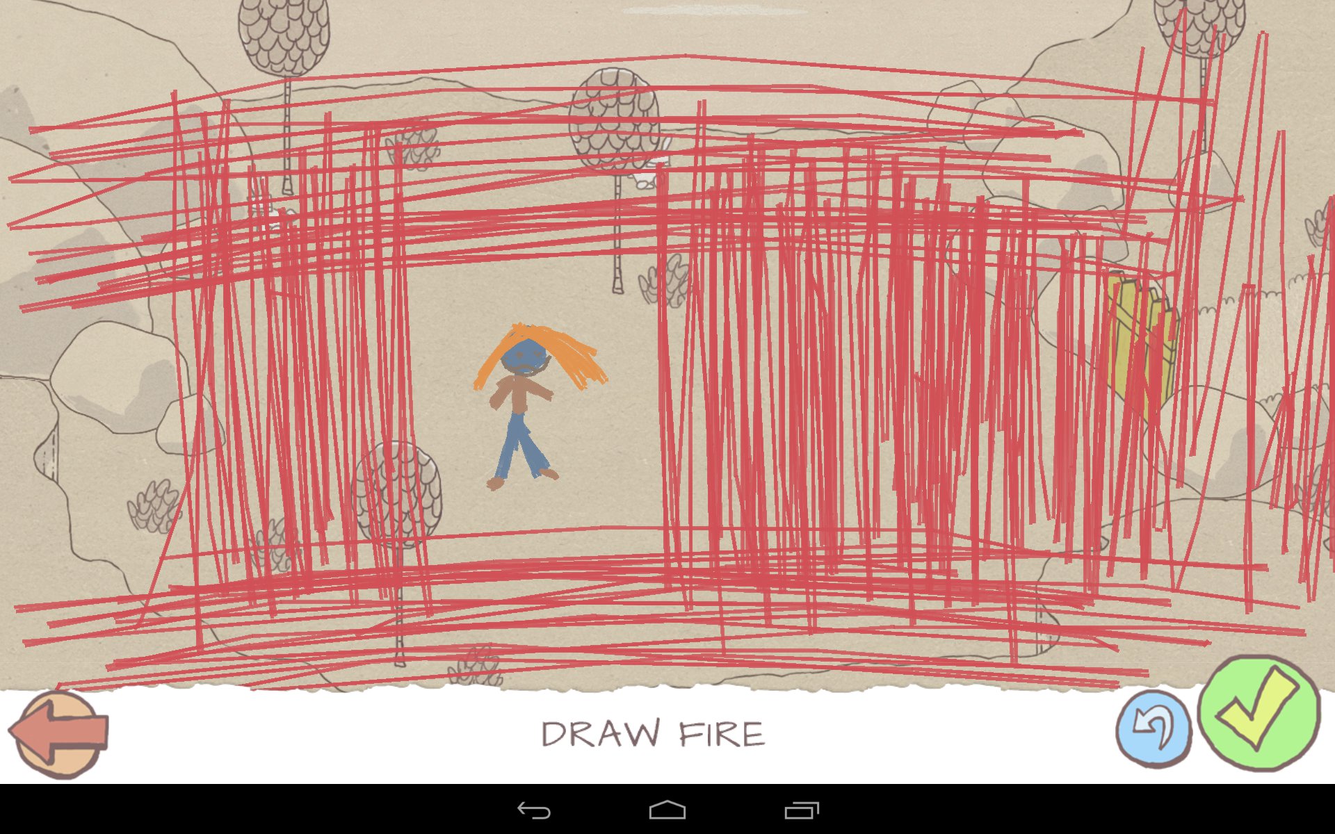 Radzić sobie będziemy za pomocą kredek o specjalnych mocach. Na początku władamy jedynie czerwoną, ognistą kredką. Możemy nią narysować płomienie na dowolnym elemencie planszy i w ten sposób go spalić. Jeśli więc na naszej drodze stoją drewniane drzwi – rysujemy jak stoją w płomieniach i gotowe! Później będziemy mogli narysować też klucz, siekierę, deszczowe chmury i inne.