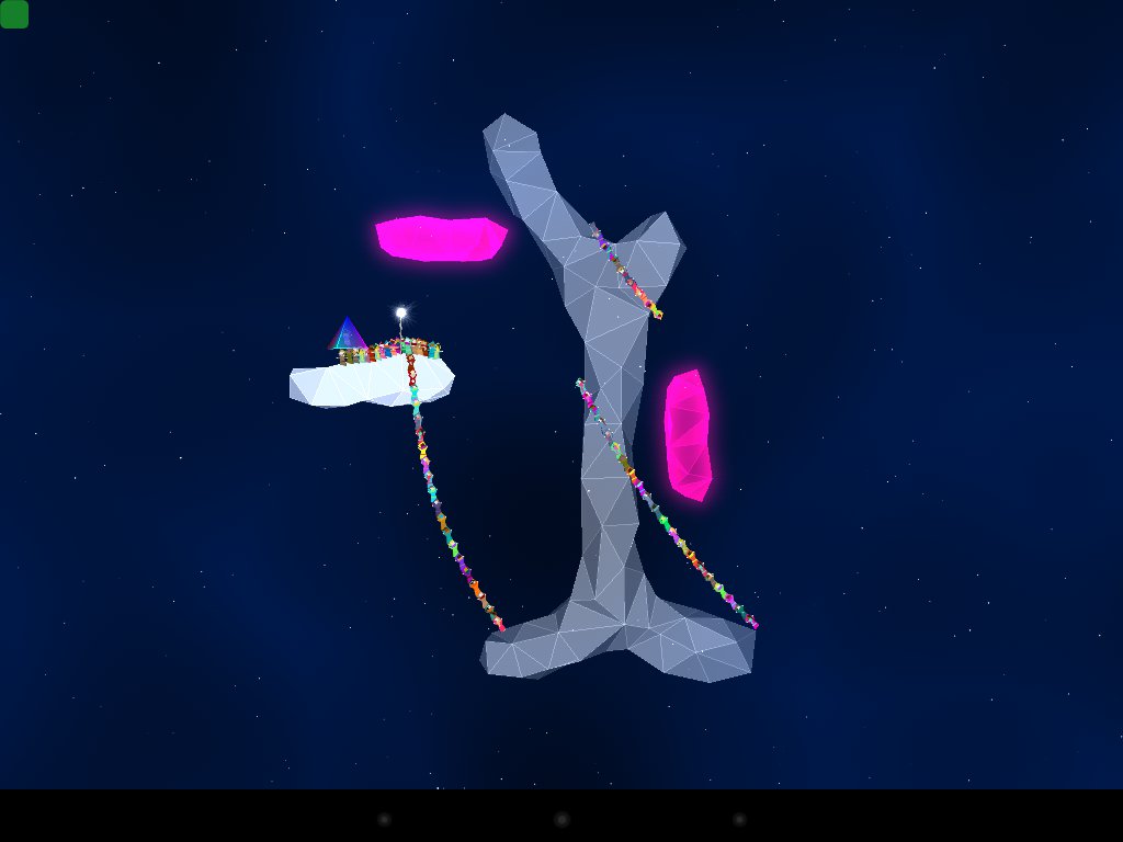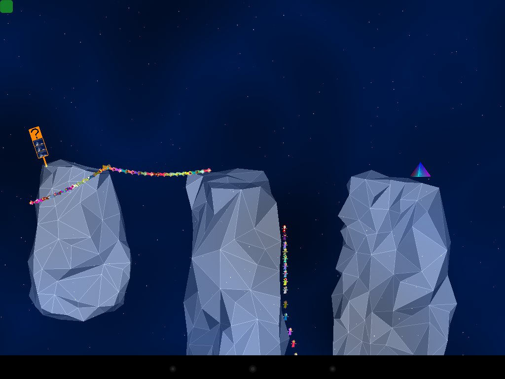Przeszkodę stanowią wszelkie miejsca, gdzie możemy spaść w dół, ale też świecące na różne kolory kryształy. Kontakt z taką powierzchnią sprawia, że ludzka wieża wraca z powrotem do przewodnika, ale jeśli on sam się z nią zetknie – będziemy musieli powtarzać poziom od nowa, wcześniej podziwiając jak nasza układanka rozsypuje się w spowolnieniu na czynniki pierwsze.