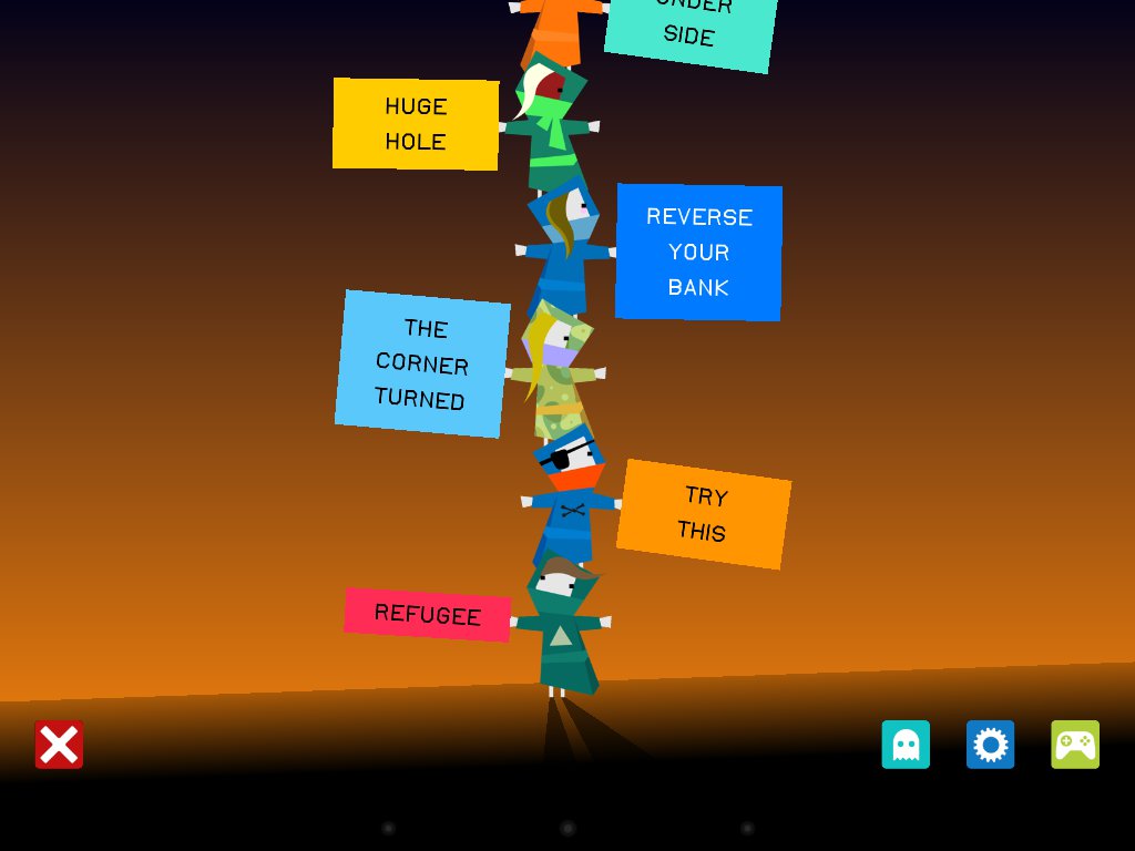Wieża nie musi wcale spaść z góry na podłoże, by stworzyć przejście. Bohater znajdujący się na szczycie wieży przyczepia się do każdej powierzchni, a w ten sposób możemy wspinać się wyżej, niżej omijając przy tym kolejne przeszkody. Jeśli zajdzie taka potrzeba, w momencie przechodzenia przez most możemy dotknąć dwukrotnie ekranu, niszcząc ową konstrukcję i spadając bezpośrednio w dół.