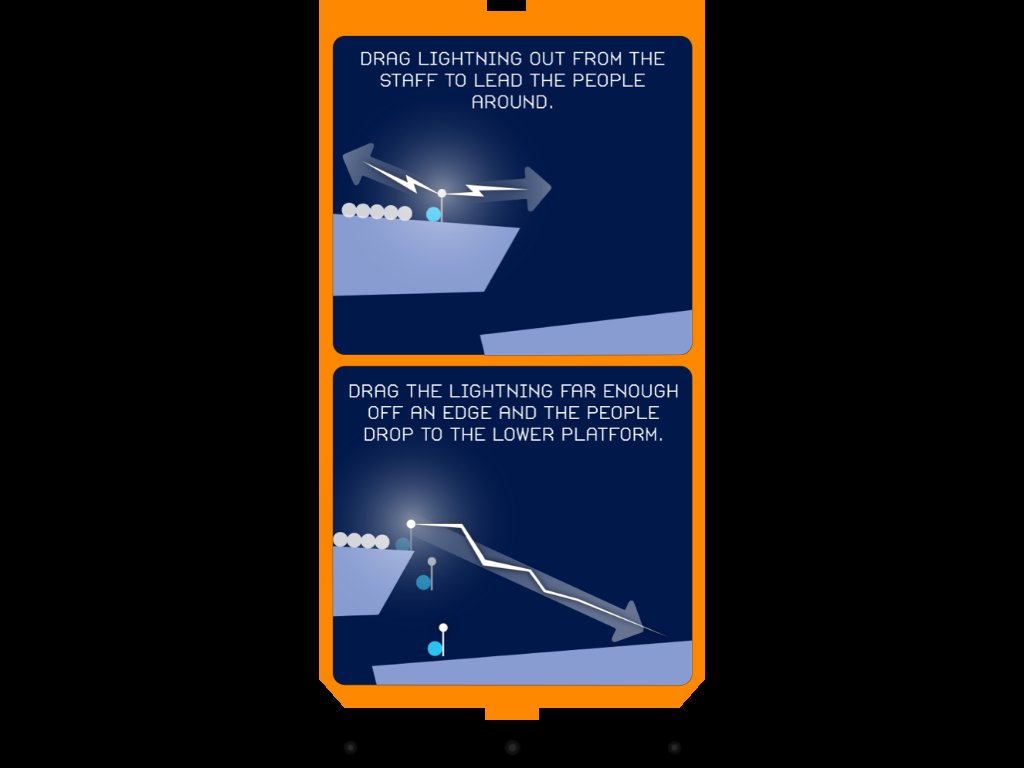 Rozpoczniemy od nauki zdolności przewodnika. To właśnie osoba z magiczną laską, którą sterujemy, prowadzi kolorową grupę. Grupa ufa nam bezgranicznie, przez co ślepo podąża za białym światłem, niestety nawet jeśli prowadzi to wprost w przepaść. By ukończyć poziom, musimy więc skutecznie omijać wszelkie niebezpieczeństwa.