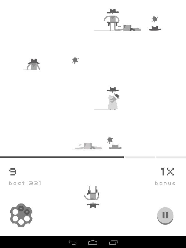 Na koniec gra, która oddzieli zwykłych rewolwerowców, od tych najwyższej klasy. Widzieliśmy to już w wielu westernach – podbijanie monety w powietrzu pociskami. Na planszy pojawiają się kowboje, którzy podrzucają monety. Strzelamy do jednej, przychodzi kolejny, strzelamy do drugiej i tak w kółko.