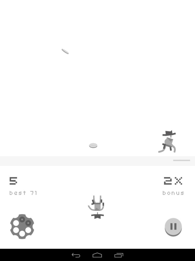Jeśli nie chcemy dostać kolejnej monety, musimy strzelić do kowboja, który próbuje nam ją podrzucić. Upadek któregokolwiek pieniążka na podłogę oznacza koniec gry. Z kolei trafienie w twa jednocześnie spowoduje połączenie monet w jedną.