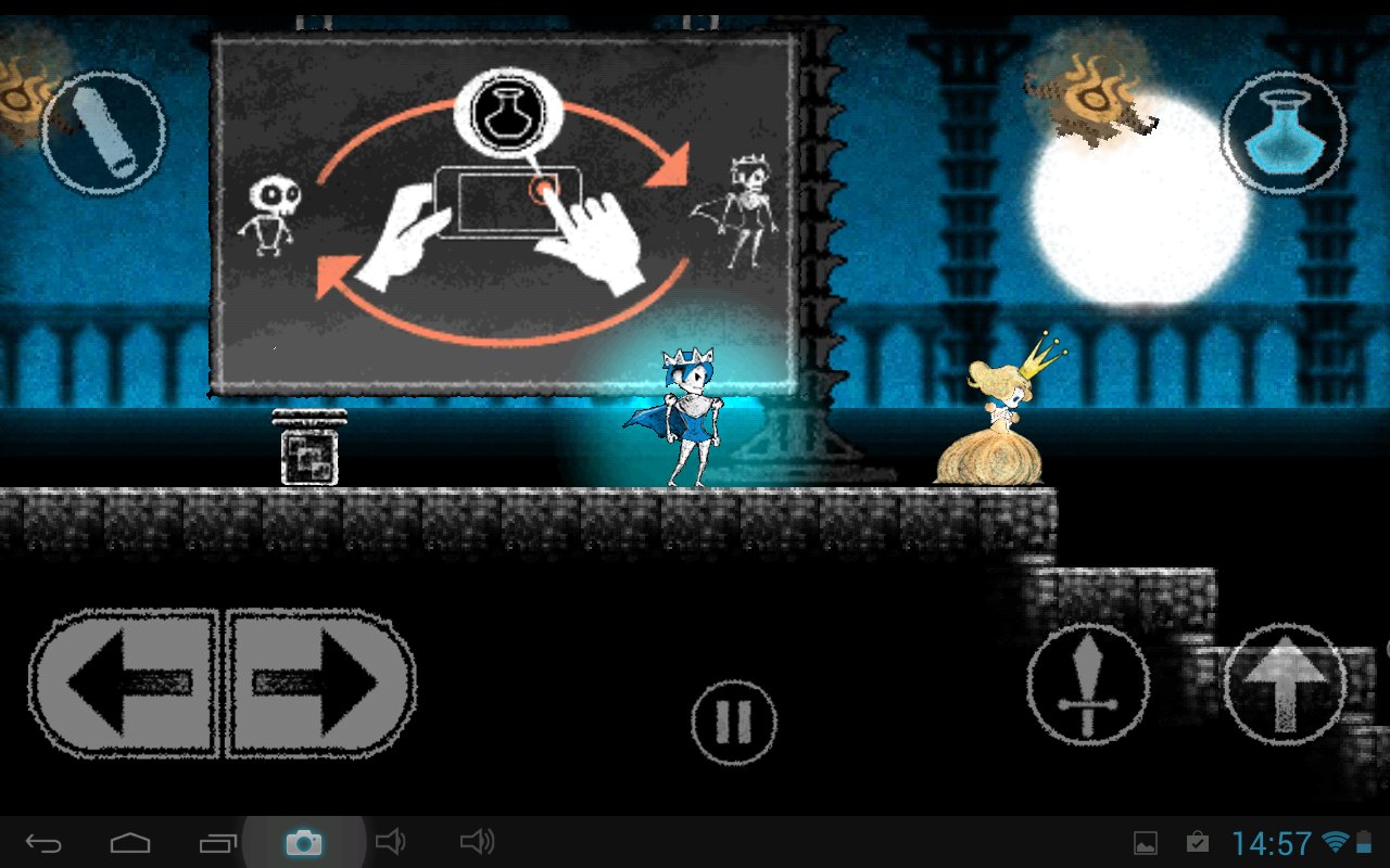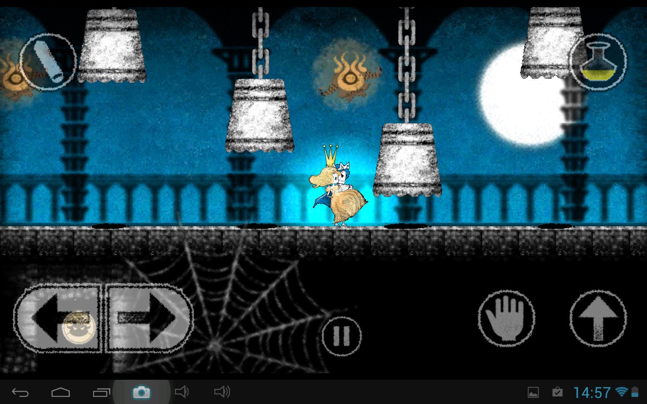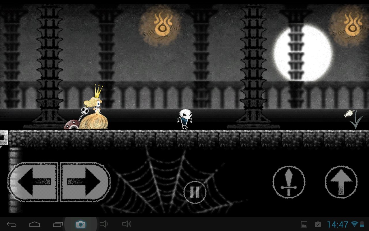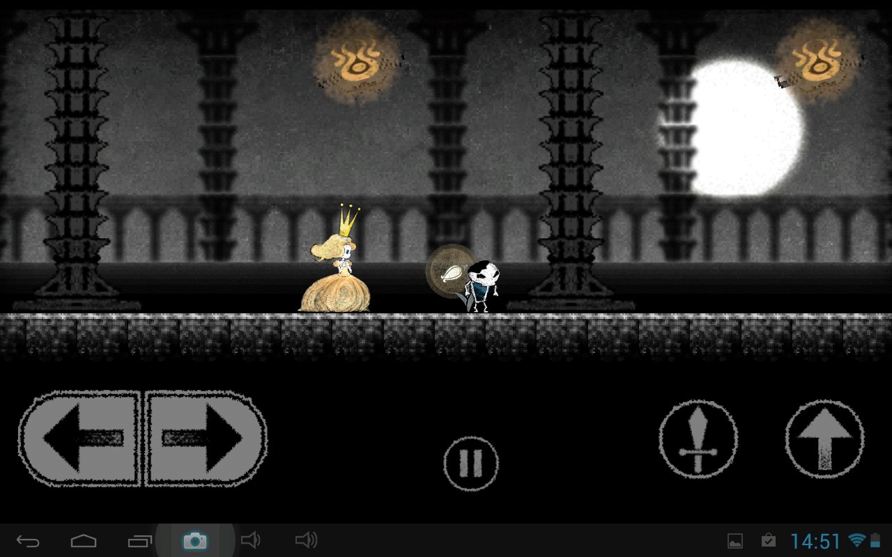 Jak już pisałem, oprawa graficzna nie należy do najlepszych. Największym rozczarowaniem okazało się tło, które zupełnie nie nadaje się do tej produkcji. Jest takie zwyczajne. A Dokuro jest grą nadzwyczajną. Podczas zabawy okazało się, że grafika zupełnie mnie nie interesuje, gdyż moją uwagę przyciągały wyłącznie szare barwy i przytłaczająca kolorystyka. Niemal wszystko co zobaczymy na ekranie jest barwy czarnej lub szarej. Wyjątek stanowi świecąca się (w dosłownym tego słowa znaczeniu) Księżniczka i jej ukochany Książę. Natrafimy również na pojedyncze elementy otoczenia, które także wyróżniają się swoim odcieniem. Przyznam Wam się szczerze, że to chyba tak przygnębiający świat przedstawiony zrobił na mnie największe wrażenie.