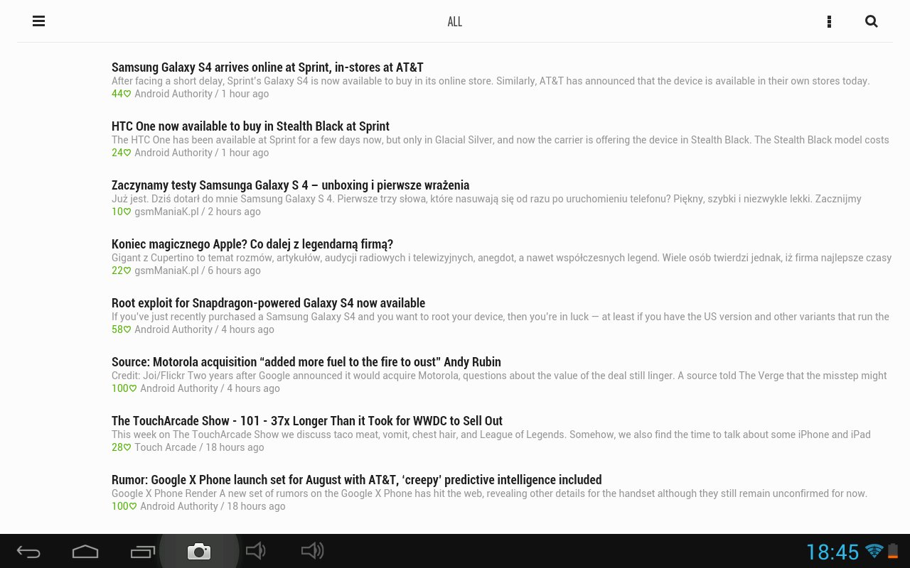 Feedly uruchomiłem na tablecie PLUG 10.1, wyposażonym w ekran LCD, wydajny dwurdzeniowy procesor i 1 GB pamięci operacyjnej RAM. Specyfikacja jest wystarczająca do płynnego działania większości gier dostępnych na system Android. Więcej na temat urządzenia przeczytacie w maniaKalnym teście tabletu.