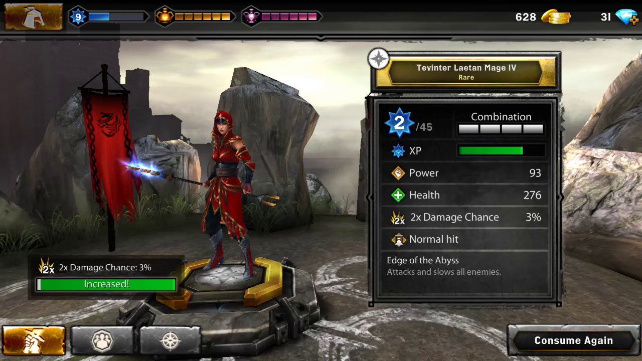 O rezultacie walki przekonujemy się na końcu, gdy pozostanie przy życiu któraś z naszych postaci – lub nie. Tak więc jedyny wpływ na rozgrywkę jaki posiadamy to odpowiednie dobranie drużyny, tak by była w jednym przynajmniej aspekcie skuteczniejsza od drużyny wroga. Może być stworzona z postaci szybszych, które zwyciężą zanim rozpocznie się tura przeciwnika, z postaci posiadających lepsze czary lub – zwyczajnie silniejszych. To ostatnie nasuwa pytanie – skąd wziąć rzadkie, elitarne figurki o najlepszych zwycięskich parametrach? A więc jak to w świecie mobilnej rozgrywki bywa – ze sklepu gry, gdzie za zdobyte podczas misji – lub kupione za kieszonkowe – kryształy możemy nabyć możliwość losowania nowego okazu do naszej kolekcji figurek.