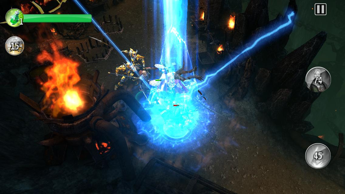 Oczywiście nie samą bronią białą człowiek żyje. Do naszej dyspozycji oddano umiejętności specjalne, znacznie poprawiające zdolności bojowe. Na ekranie urządzenia mobilnego pojawiają się odpowiednie przyciski, których „naciśnięcie” wywoła zaklęcie siejące spustoszenie.