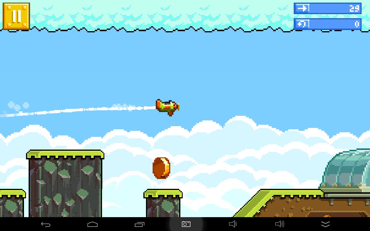 Zaczynamy więc od sterowania. Samolotem sterujemy za pomocą pojedynczych dotknięć ekranu. Przytrzymując palec na ekranie, samolot leci do góry i do przodu – tak, jakby lotki skierowane były ku górze, a ciąg ustawiony na maksimum. Jeśli więc będziemy ciągle trzymali ekran, to samolot będzie robił beczki. Puszczając palec, wręcz przeciwnie. Nie mamy ciągu i pozwalamy, by samolot zwyczajnie szybował, ściągany w dół siłą grawitacji.