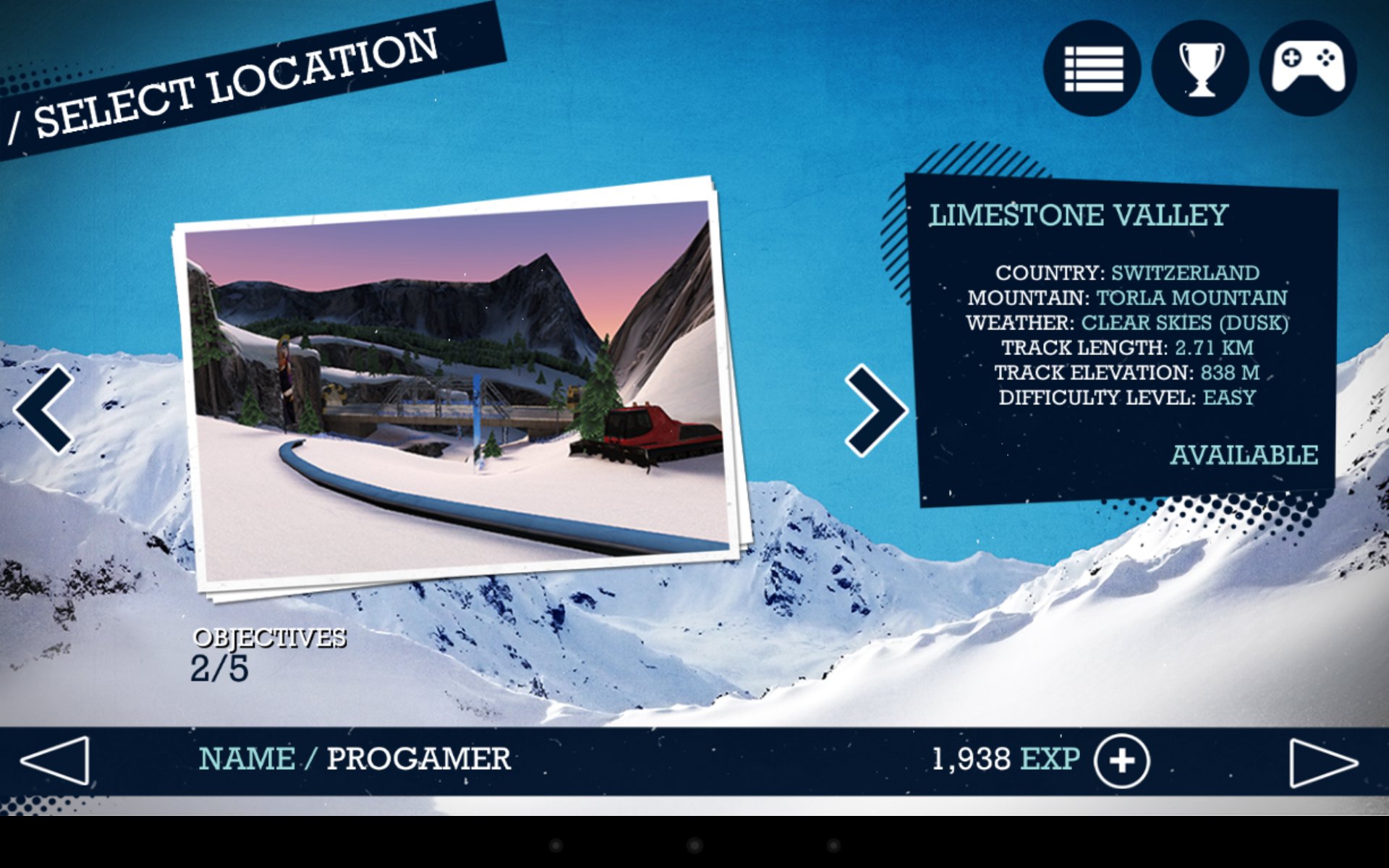 Nie brakuje także tras, na których możemy uprawiać ten wyjątkowo efektowny zimowy sport – twórcy przygotowali kilkanaście różnorodnych lokacji, choć na początku mamy dostęp jedynie do trzech. Odblokowywanie kolejnych odbywa się poprzez zdobywanie kolejnych osiągnięć przypisanych do trasy bądź też „płacenie doświadczeniem”, które zdobywamy po kolejnych przejazdach.