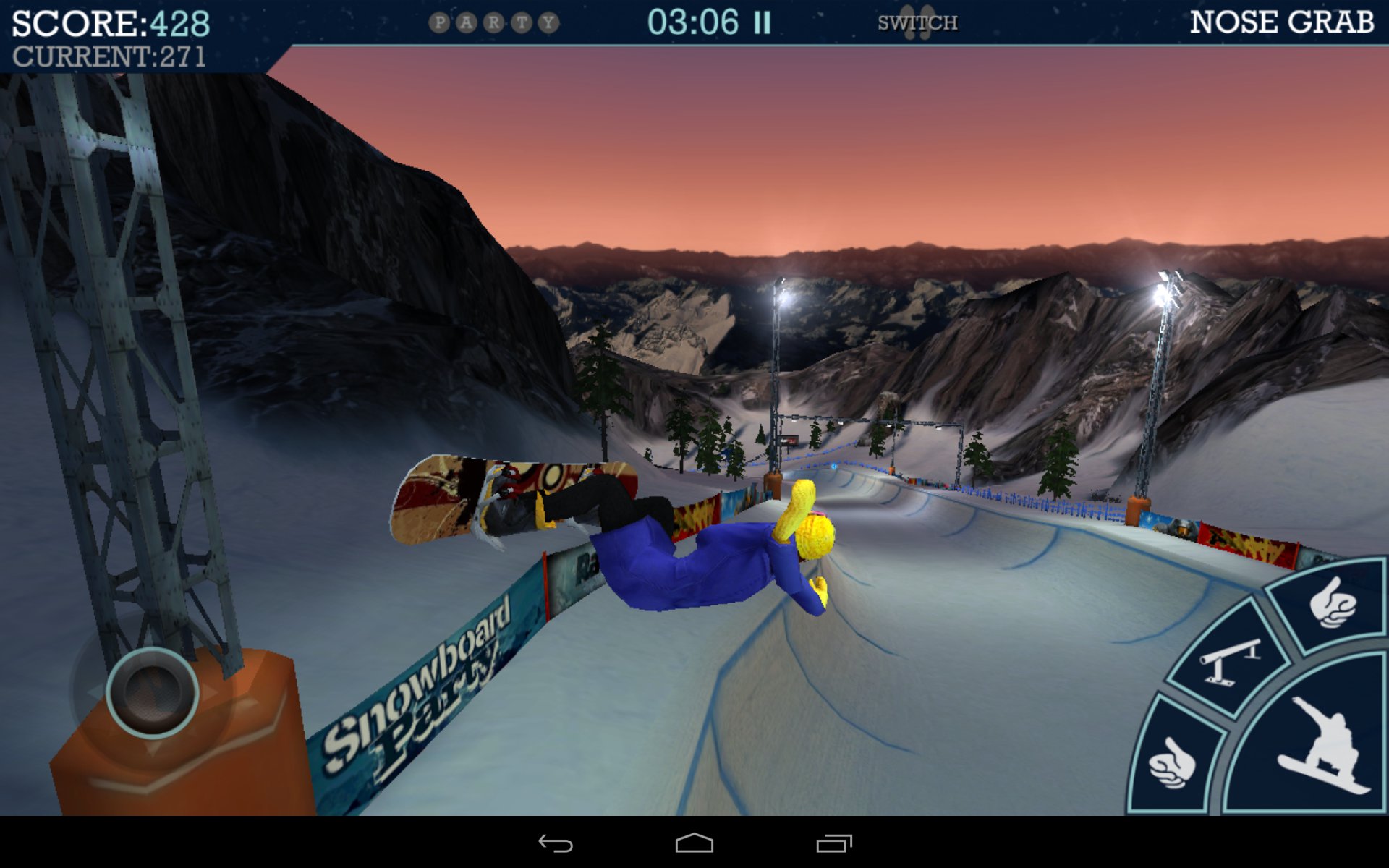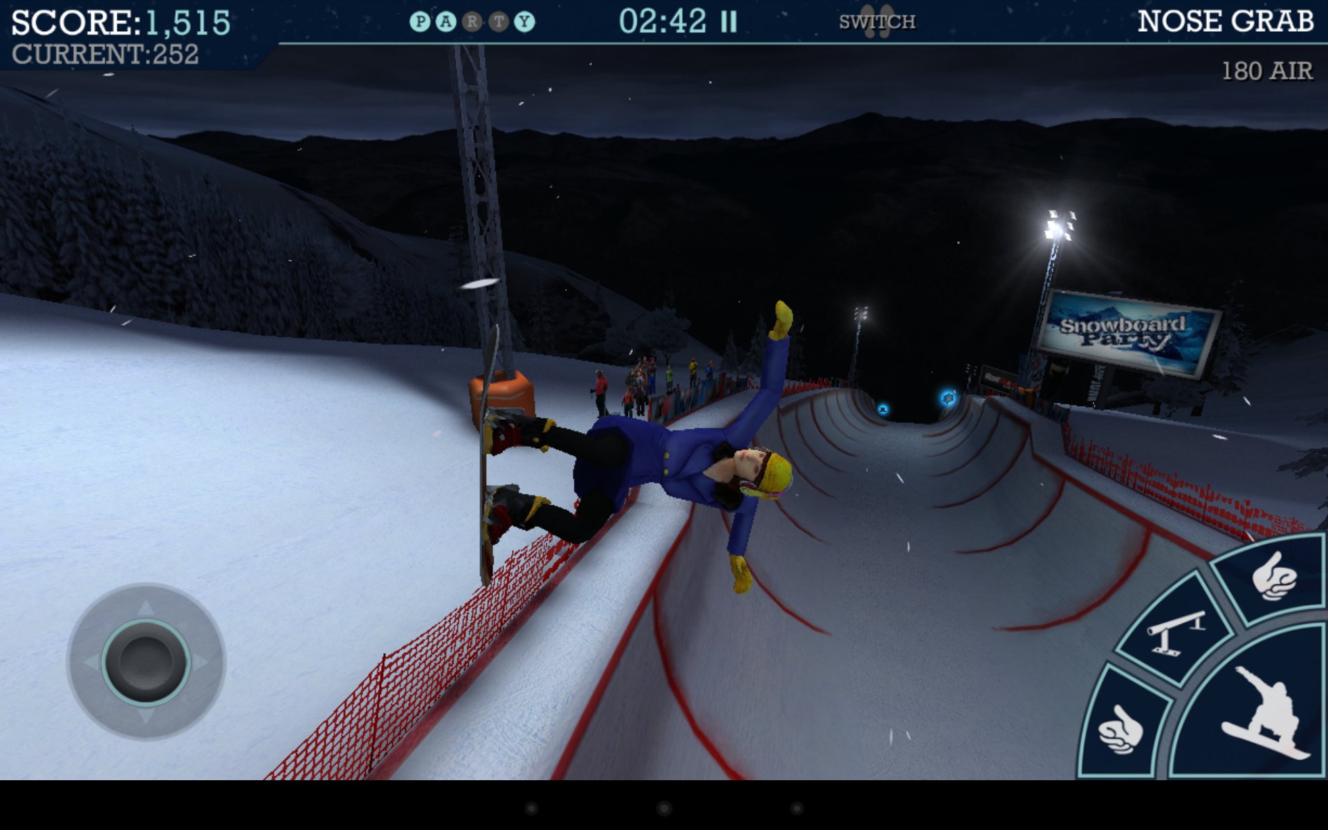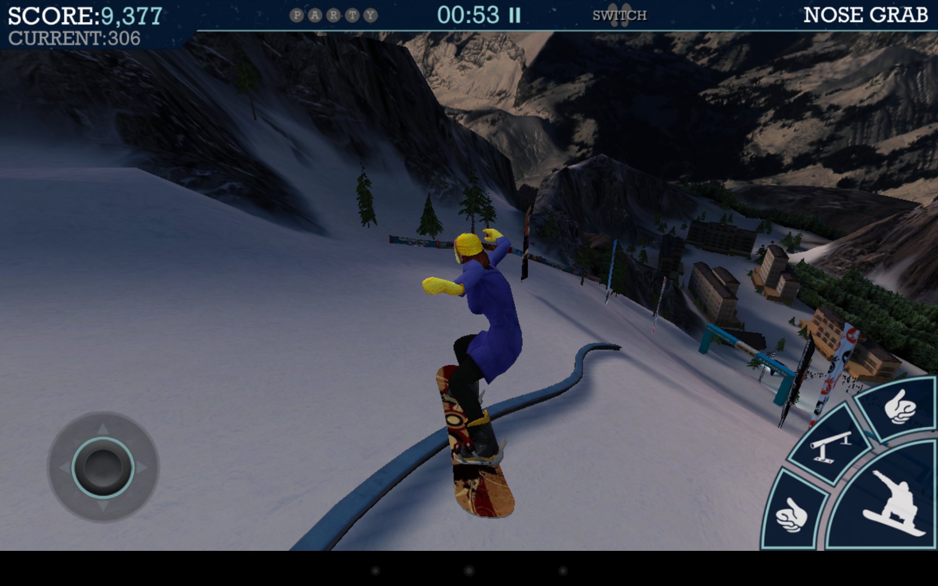 Jeśli jak zapomnimy o niedogodnościach związanych z mikrotransakcjami, to staje przed nami obraz bardzo grywalnej produkcji, w której pokonywanie kolejnych metrów na desce snowboardowej to naprawdę przyjemne uczucie. Spora w tym zasługa bardzo dobrze zaprojektowanego systemu sterowania – po lewej stronie znajdziemy wirtualną gałkę, która odpowiedzialna jest za poruszanie się kontrolowanej postaci, z kolei po prawej znalazło się miejsce na panel trików. Nauczenie się wszystkich potrzebnych kombinacji wymaga tak naprawdę kilkudziesięciu minut praktyki i odkrywania nowych ewolucji na śniegu. Wykonywanie kolejnych kombinacji odbywa się płynnie i – przede wszystkim – jest bardzo intuicyjne, co jest przecież szalenie ważne przy tak dynamicznej rozgrywce, jaką niewątpliwie możemy zaobserwować w Snowboard Party.
