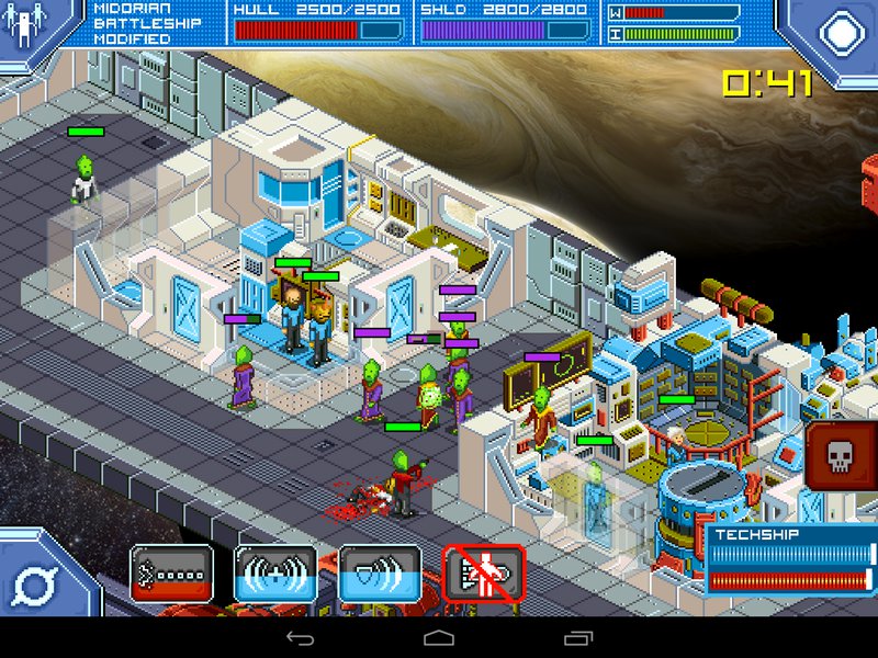 Załoga oczywiście nie tylko siedzi w swoich pokojach, może również czynnie uczestniczyć w krwawych walkach na pokładzie. Żołnierze walczą używając broni plazmowych, medycy ratują poległych, a techniczni dokonują niezbędnych napraw. Jeśli któraś z ścian ulegnie zniszczeniu, próżnia może wyssać naszych przyjaciół, dlatego naprawianie statku na bieżąco jest tak ważne. Niebagatelne znaczenie odgrywa tutaj pomoc medyczna – jeśli któryś z naszych doświadczonych członków załogi polegnie, trzeba będzie w jego miejsce zwerbować żółtodzioba, który na początku będzie jedynie przeszkadzał.