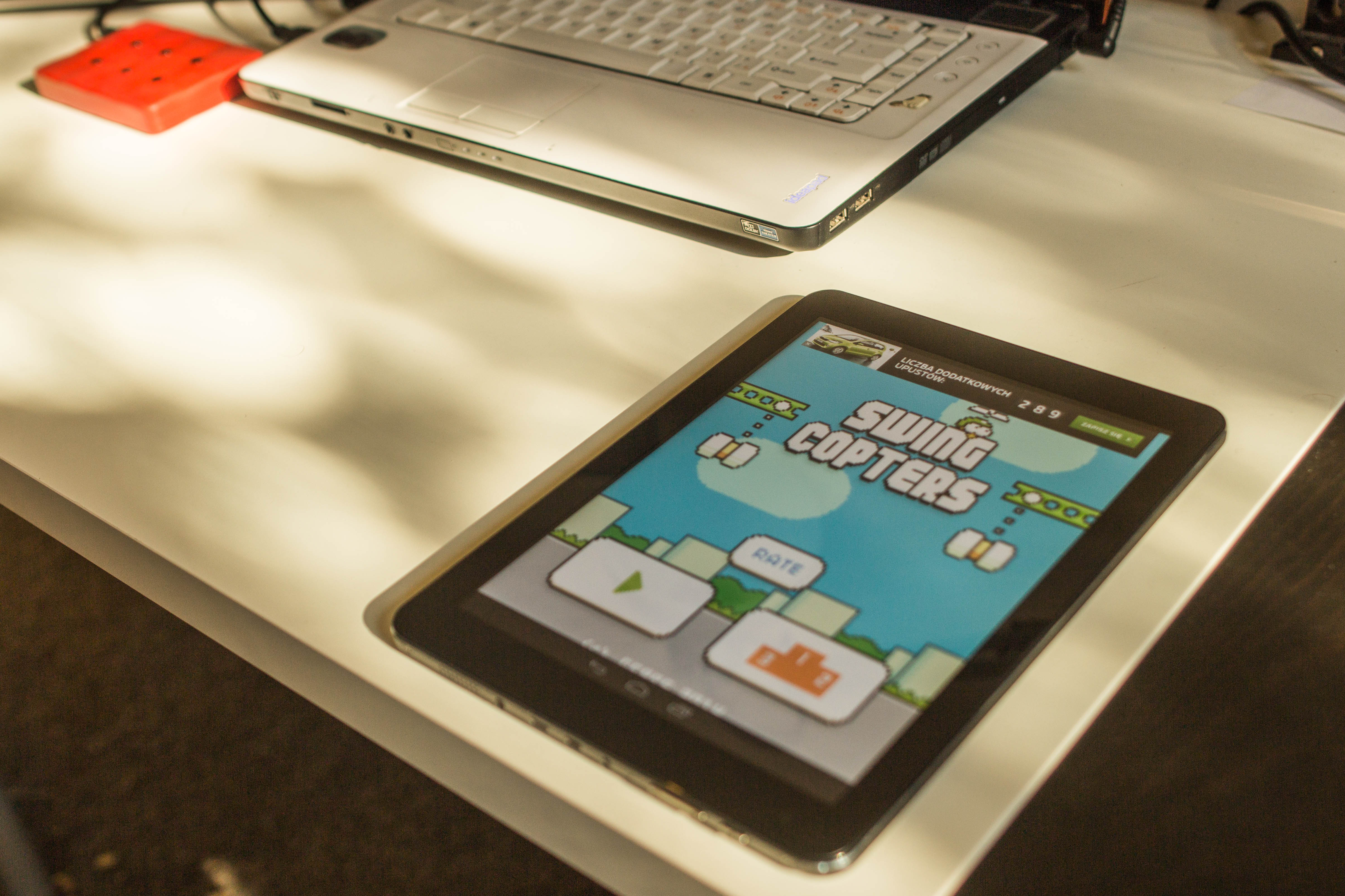 Swing Copters przetestowałem na tablecie Kiano Elegance 9.7 3G z ekranem o rozdzielczości 1024 x 768 px, 1 GB RAM i 4-rdzeniowym Rockchipem RK3188 o częstotliwości taktowania osiągającej 1,6 GHz. Test urządzenia możecie przeczytać na tabletManiaKu.