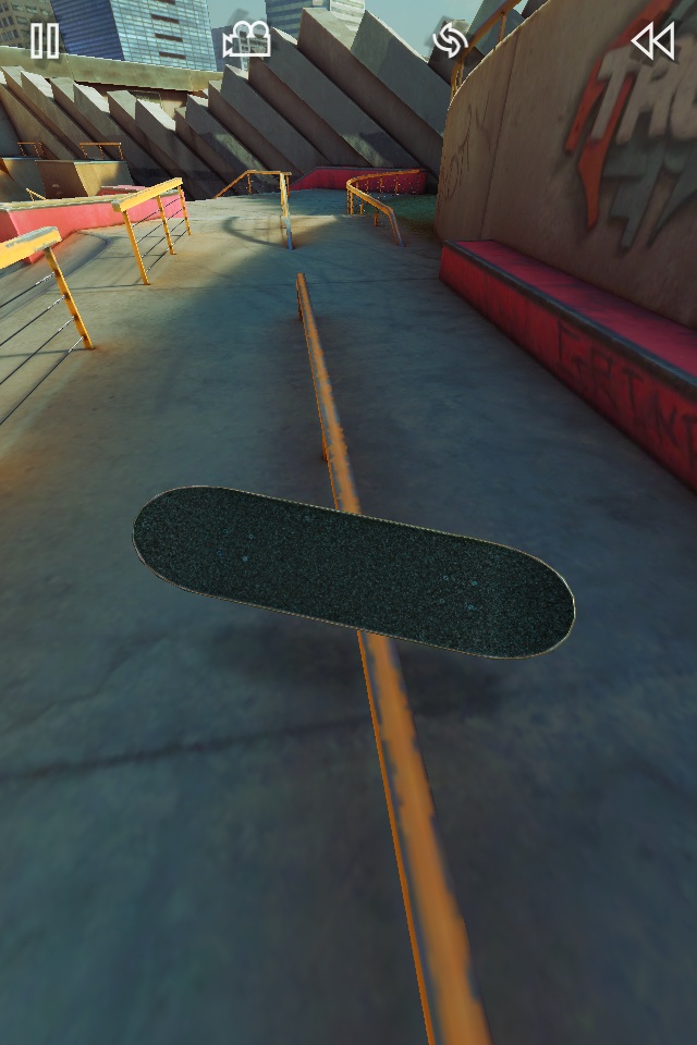 Po kliknięciu w ikonkę aplikacji zostaniesz od razu przeniesiony do skateparku. Momentalnie wsiadasz na deskę i widzisz przed sobą dwie poręcze, które aż proszę się o dobre 50-50.